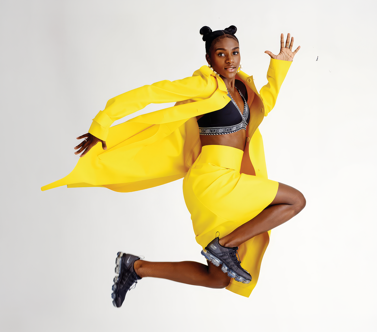 Instead, she points to work that recalibrates representation: directing a shoot featuring thirteen elite female athletes, including Dina Asher-Smith and England captain Leah Williamson, celebrating women performing at the peak of physical excellence.